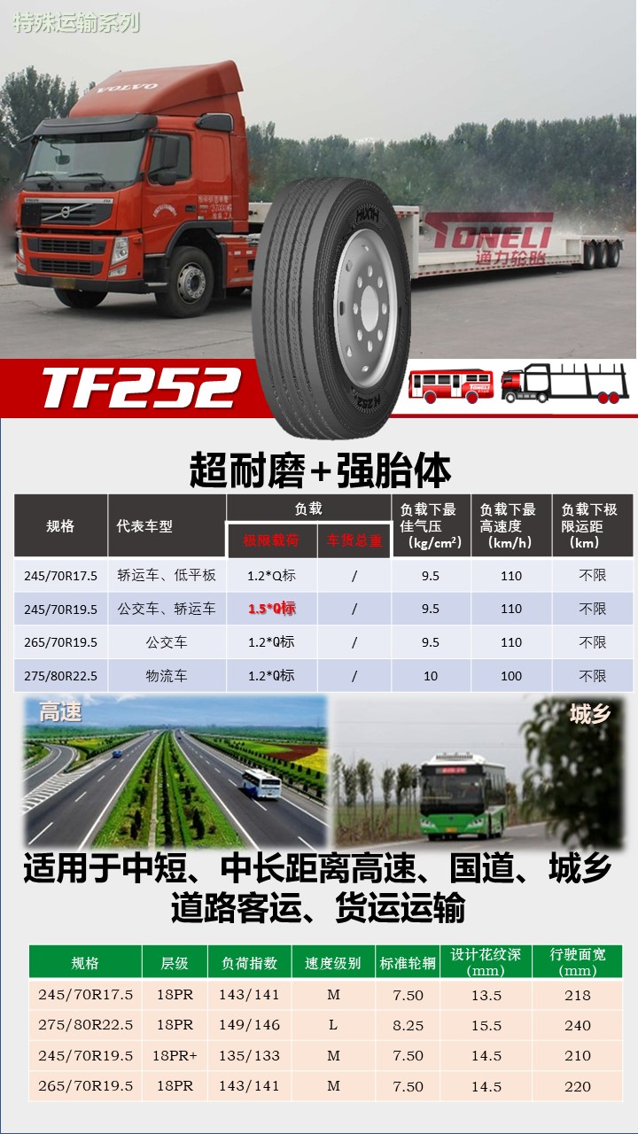 專為重載、中長距離、中高速行駛于高速、國道、省道路面等車輛設計,適合卡貨拖掛車驅動輪位使用。