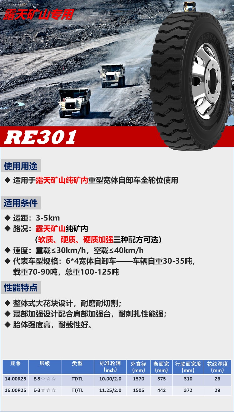 專為高強(qiáng)超載、短距離、低速行駛于碎石、 工地混合路面車輛設(shè)計(jì),適合卡貨車驅(qū)動(dòng) 輪位使用。