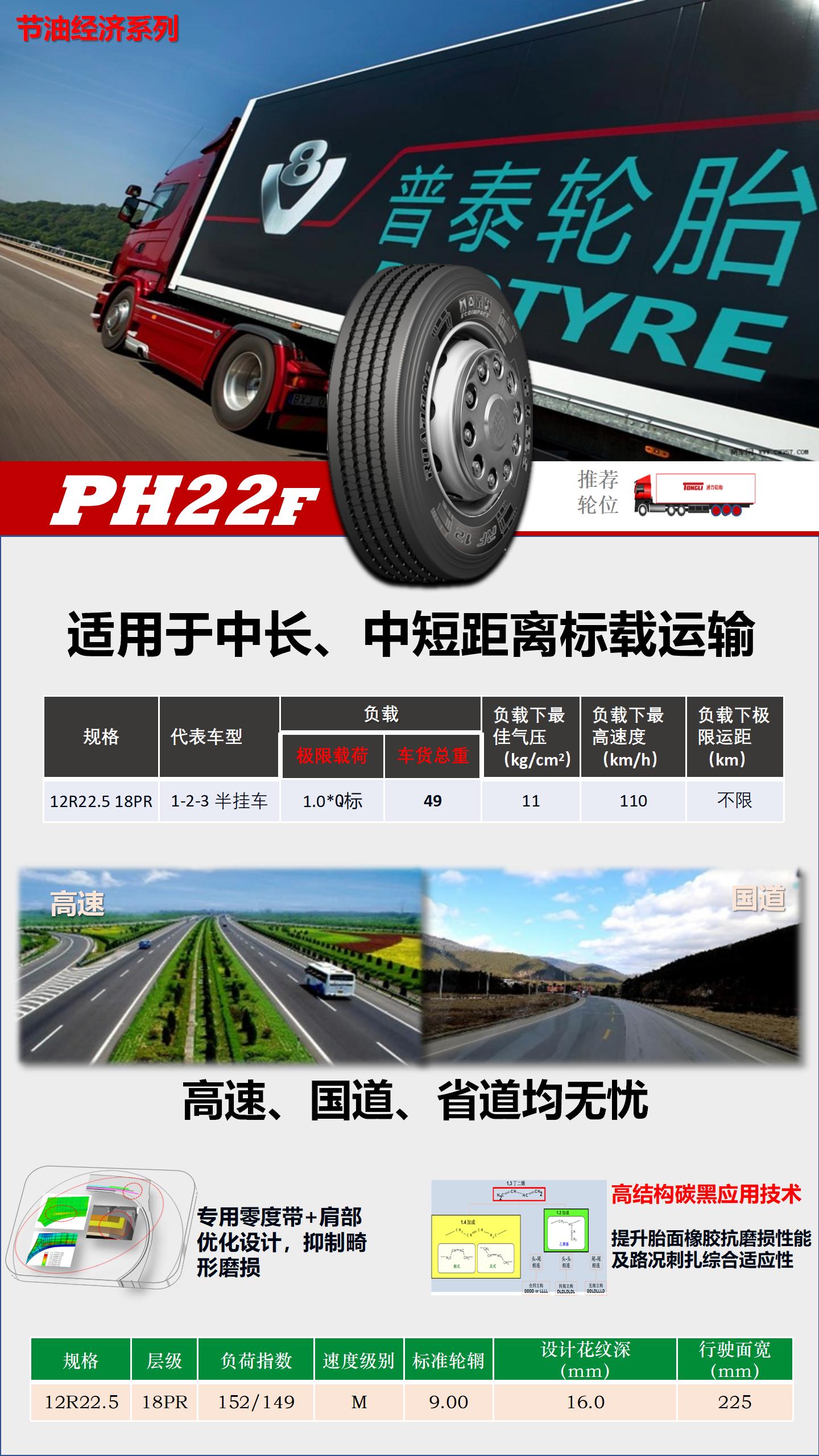專為重載、中長距離、中高速行駛于高速、國道、省道路面等車輛設計,適合卡貨拖掛車驅動輪位使用。